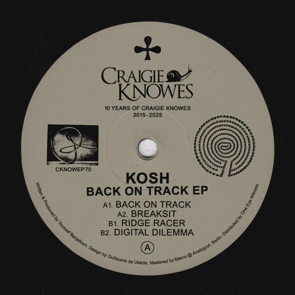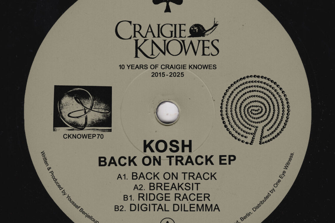 Kosh’s latest Back On Track marks his debut EP for the Craigie Knowes label. Spanning four tracks, all of them intertwine Detroit techno influences, and acid lines with emotive machine-driven textures. The EP feels like a statement, not just about respect for techno’s roots, but for forging a sound firmly in the present.