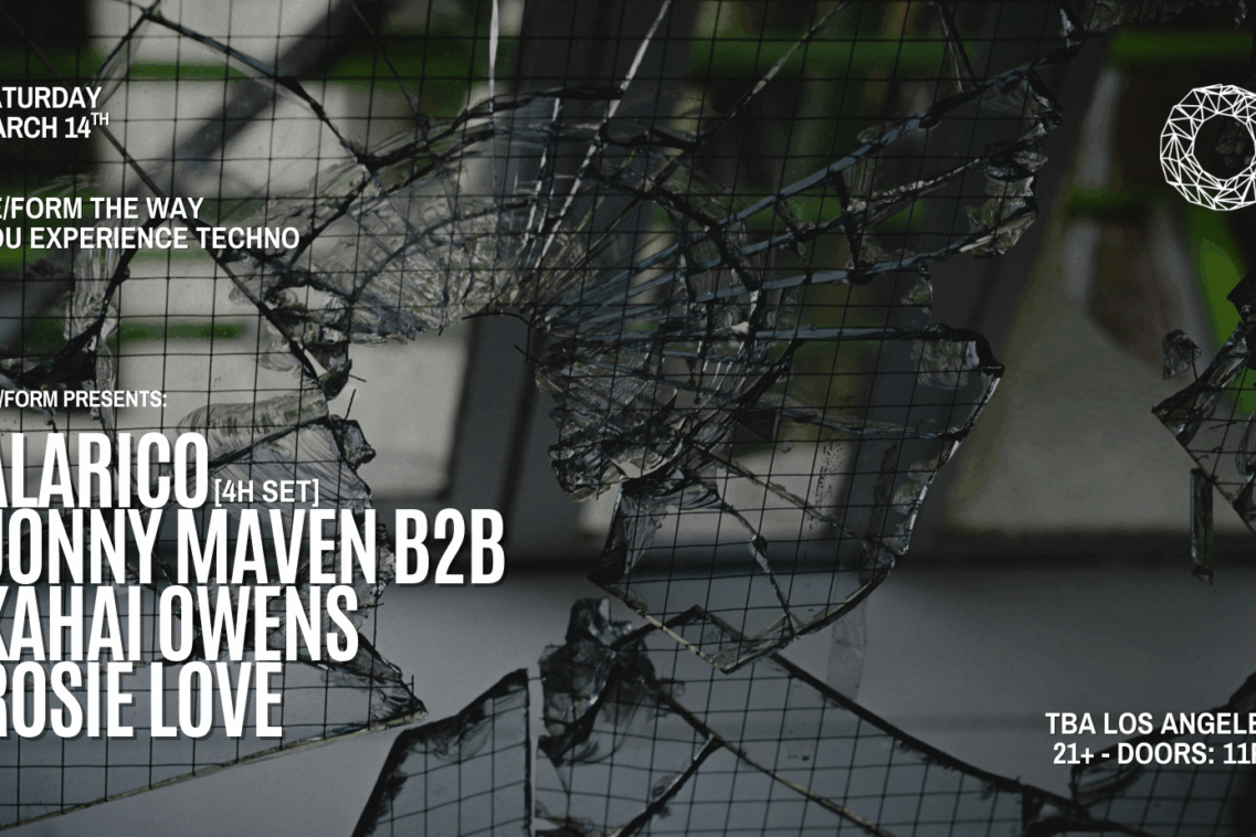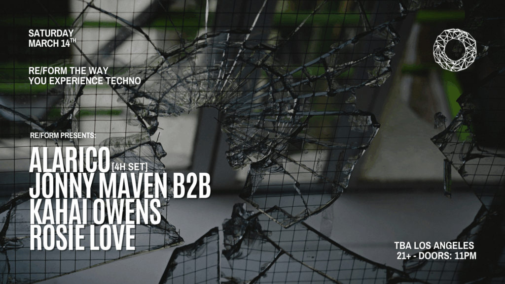 On Saturday, March 14th, RE/FORM Presents: Alarico [4 Hr Set], Jonny Maven b2b Kahai Owens, & Rosie Love!